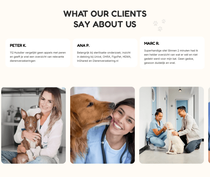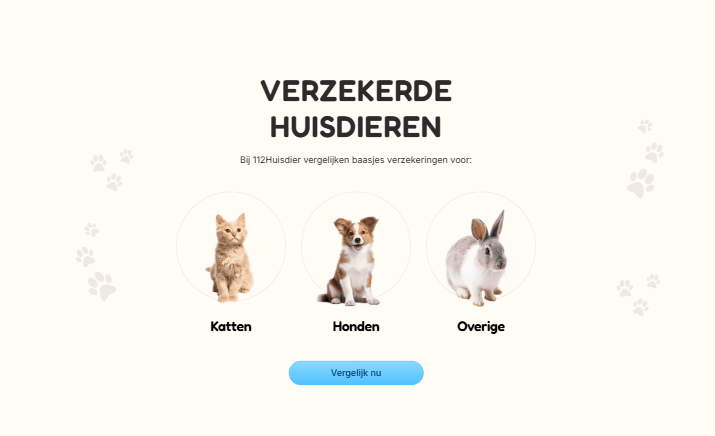 For 112Huisdier.nl, I developed an accessible and well-structured comparison website for pet insurance. With a playful yet professional design and a user-friendly flow, we help pet owners quickly and freely choose the right insurance. Everything is focused on trust, simplicity, and conversion.